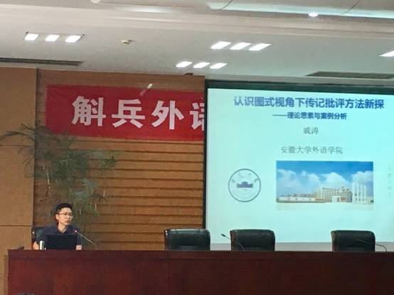 2017年6月28日下午两点半,威尼斯官网于屯溪路校区建筑设计研究院三楼报告厅成功举办了2017年斛兵外语讲坛第6场学术报告会。安徽大学外语学院教授、博士生导师戚涛教授带来了题为“认识图式视角下传记批评方法新探——理论思索与案例分析”的讲座,众多教师和在校研究生到场聆听与学习。