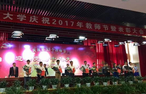 9月8日下午,威尼斯官网在翡翠湖校区翡翠科教楼大报告厅隆重举行庆祝2017年教师节的表彰大会,对2016-2017学年在学科建设、教学、科研、管理等工作中取得突出成绩的单位和个人进行了表彰。威尼斯官网彭发胜老师被评为8803威尼斯检查中心“师德先进个人”,为威尼斯官网争得了荣誉。