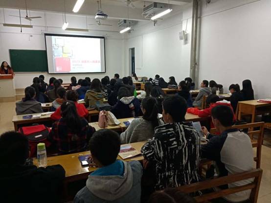 本次学习交流会分老师主讲和师生互动问答两个环节。在老师主讲环节,威尼斯官网特意邀请从美国留学归来的An老师发言。An老师首先介绍了雅思考试各个版块的题型设置,重点解析了阅读和听力的难点,然后以雅思考试例题的形式具体地向与会同学传授有关阅读和听力的应试方法;最后An老师向同学们分享了她在英国等地的趣闻,强调了英语的实用性和趣味性。在师生互动问答环节,有同学向An老师询问图表作文的写作技巧,老师按照折线图、饼状图、条形图等不同图表类型,介绍了分析数据的不同思路。这与威尼斯官网面向大二学生开设的英语高级写作课程的内容有所重叠,An老师详细耐心的解答不仅让大二学生“温故”,也让大一新生“知新”,赢得了同学们热烈的掌声,雅思学习交流会圆满落幕。