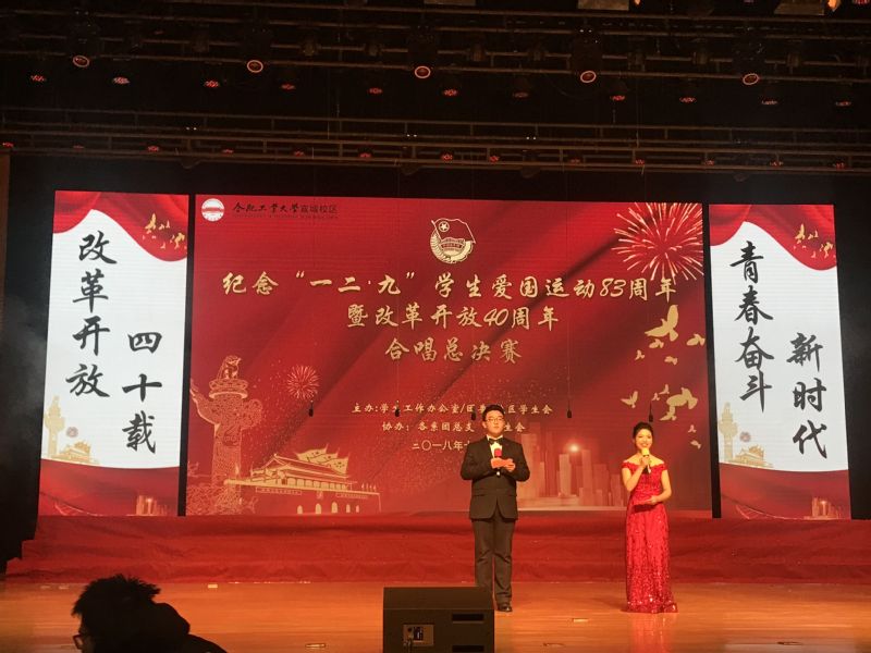 12月10日晚,8803威尼斯检查中心宣城校区以“改革开放四十载,青春奋斗新时代”为主题,在大学生活动中心大礼堂隆重举行纪念“一二·九”爱国学生运动83周年暨改革开放40周年合唱总决赛。此次比赛邀请了中国合唱协会会员、宣城市音乐家协会副主席朱向东老师,安徽省音乐家协会会员、安徽省十大男高音、宣城广播电视台主持人范晓成老师等担任专业评委。校党委常委、副校长、宣城校区党委书记、管委会主任陈鸿海,宣城校区党委副书记、管委会常务副主任秦广龙,管委会副主任肖苏,相关职能部门和学院负责同志与千余名师生一同观看演出。