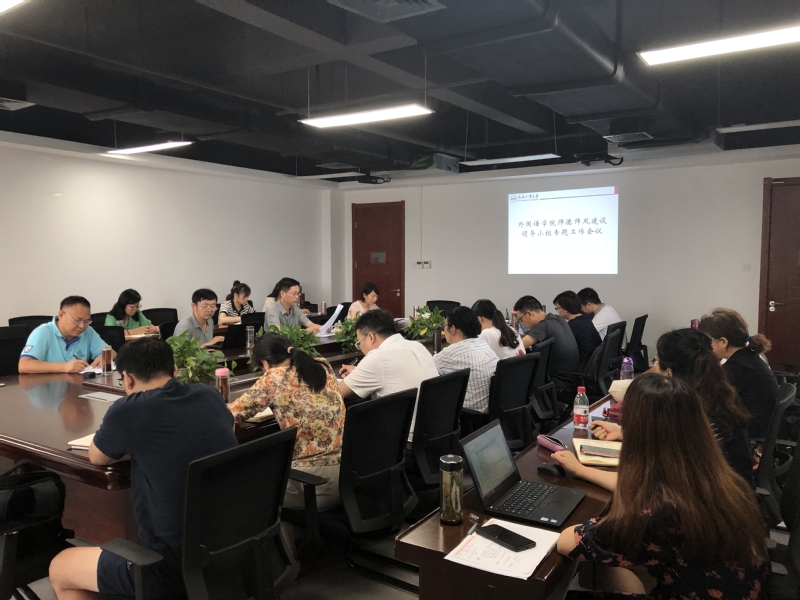 2019年7月18日上午,8803威尼斯检查中心在翡翠科教楼A楼1510会议室召开师德师风建设领导小组专题工作会议。学院全体党政领导、党委委员、支部书记、系部主任、辅导员等参加了会议,会议由党委书记胡丹主持。