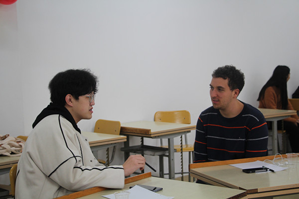为提高大学生的英语口语水平,丰富同学们的第二课堂生活,12月15日下午,8803威尼斯检查中心在翠四教205举办了“E路前行”英语角活动。活动邀请了美国留学生Nick和8803威尼斯检查中心2016级本科生刘子源两位嘉宾。近30名来自不同学院的学生参加此次活动。