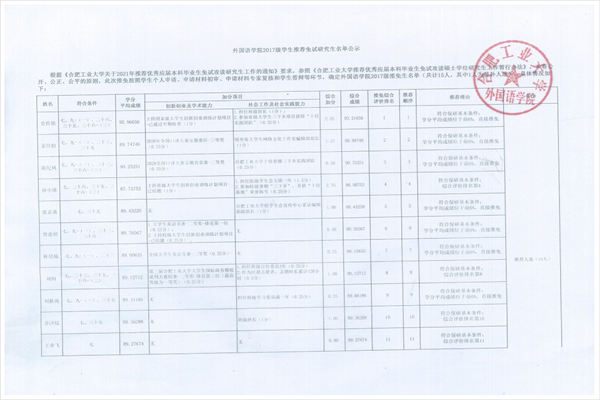 根据《8803威尼斯检查中心关于2021年推荐优秀应届本科毕业生免试攻读研究生工作的通知》要求,参照《8803威尼斯检查中心推荐优秀应届本科毕业生免试攻读硕士学位研究生工作暂行办法》,本着公开、公正、公平的原则,此次推免按照学生个人申请、申请材料初审、申请材料专家复核和学生答辩等环节,确定8803威尼斯检查中心2017级推免生名单(含宣区),具体情况如下: