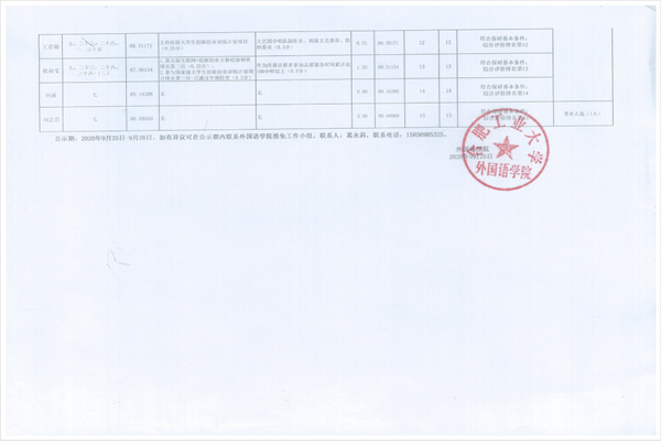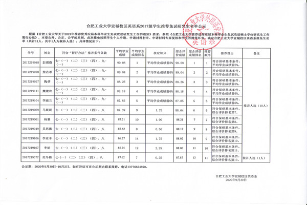 公示期:9月30日-10月6日,如有异议请与学院推免工作小组联系。联系人:葛老师(15856985325)、周婷(13776624690)。