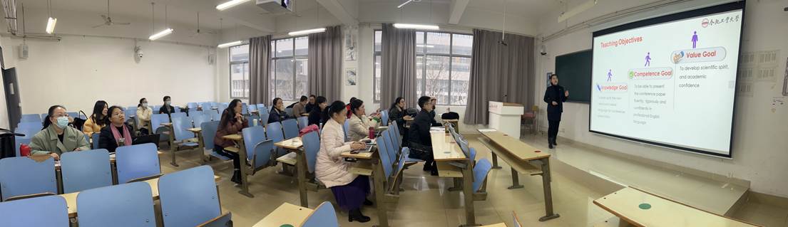 观摩会先由刘掬涟老师为大家生动形象地展示了其精心准备的研究生英语课程里面的学术会议这一单元,再是孙桂林老师就其丰富多彩的跨文化交际课程进行了详细地说课,内容详实,教学形式生动活泼。学院老师们积极参与了观摩,点评现场气氛热烈。