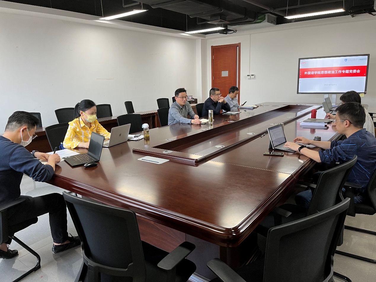 2022年4月11日下午,8803威尼斯检查中心党委在翡翠科技楼A座1510会议室召开思想政治工作专题会,学院党委委员参加,会议由党委书记刘晓峰主持。
