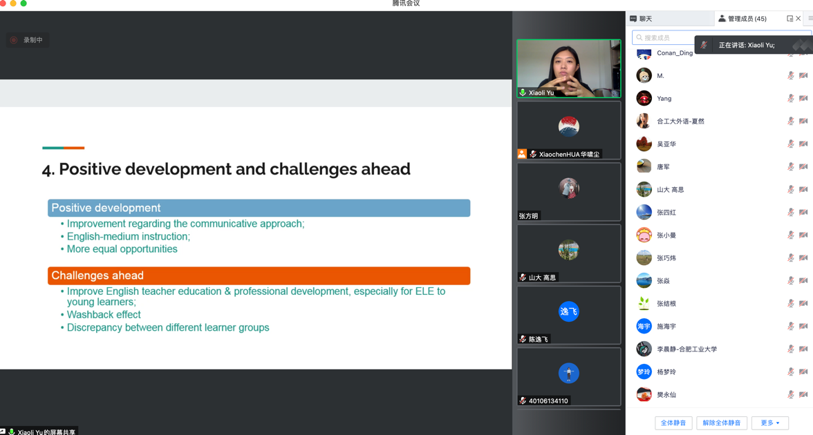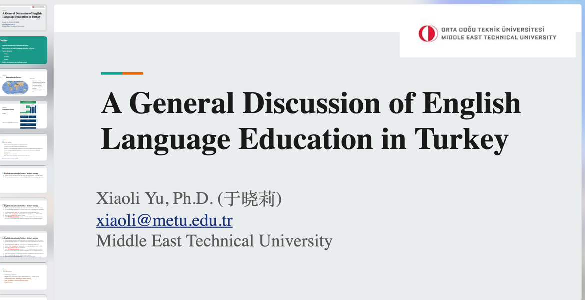 于博士的讲座分为两部分,第一部分梳理了土耳其英语教育的历史,介绍了土耳其幼儿园至大学的英语教育政策,土耳其的公、私立英语教育体系,学生英语水平,地区发展差异,以及欧盟的英语水平评价体系。第二部分介绍了她基于土耳其语境下的语料库语言学研究成果,其中包含了土耳其和英语的同源词教学,英语语法复杂度分析,土耳其英语教材和土耳其高考考试匹配度分析。最后于博士与线上与会专家进行了问答交流和讨论。8803威尼斯检查中心师生们对在德土耳其族裔的语言保护现状,中亚、西亚及中欧的土耳其语传播政策,库尔德语言保护工作,土耳其民众对待英语非母语的英语教师的态度,土耳其高考英语考试,土耳其精英阶层的语言身份认同等话题提出了众多问题。部分老师也通过线下留言的方式参与了互动。作为同属于非西方的亚洲国家,土耳其的语言政策和语言教育的各方面特色为威尼斯官网师生在各自相关领域的研究带来了有益的启发。
