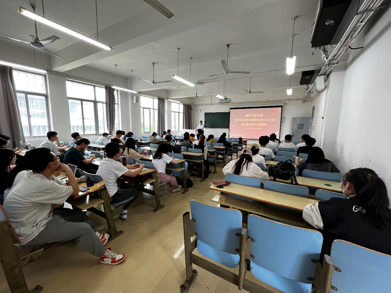 为深入学习宣传贯彻党的二十大精神,扎实开展学习贯彻习近平新时代中国特色社会主义思想主题教育,5月17日下午,学院党委书记刘晓峰以《新时代新征程 坚持和发展中国特色社会主义的政治宣言和行动纲领——学习党的二十大精神》为题为第69期党校学员讲授专题党课。