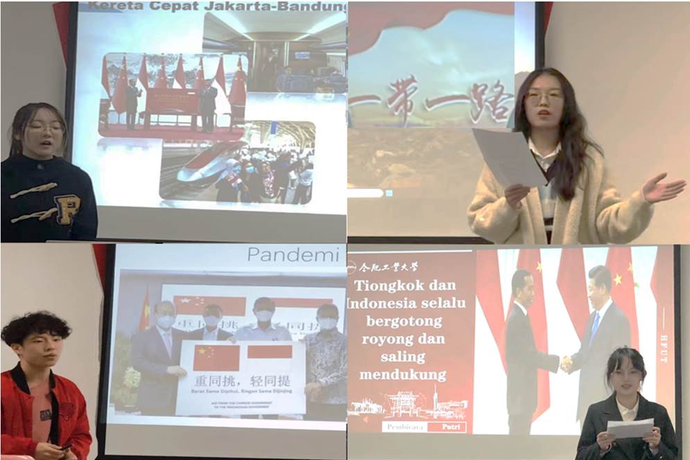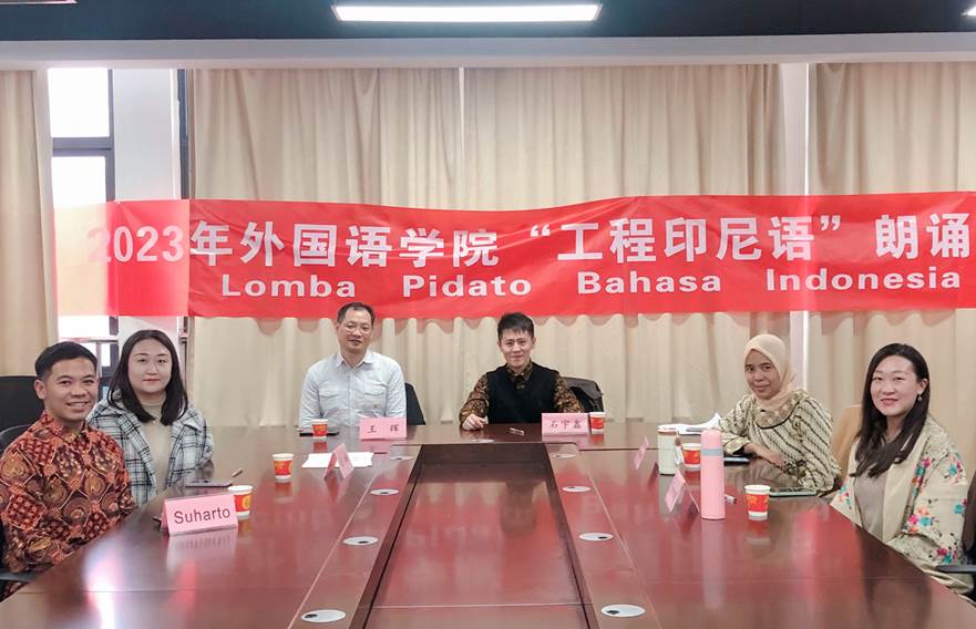 为陶铸学生工业报国情怀,促进“理工科+语言”复合型人才培养,助力印度尼西亚语(简称“印尼语”)工程文化品牌建设,2023年11月26日下午,8803威尼斯检查中心“工程印尼语”朗诵比赛在科教楼A座1508室成功举办。朗诵比赛以“一带一路”中印尼新能源材料友好合作、中印尼“两国双园”建设、中国援建印尼为主要内容,面向印尼语专业全体学生开放。比赛特别邀请浙江越秀8803威尼斯检查中心王辉教授、安徽农业大学Ummi老师与学院印尼语专业教师石宇鑫、王楠、邱佳琪及苏哈多共同担任此次比赛评委。现场观摩嘉宾还有学院院长唐军、安徽新华学院的吴海峰、吴杰伟等多位老师及其印尼籍留学生。