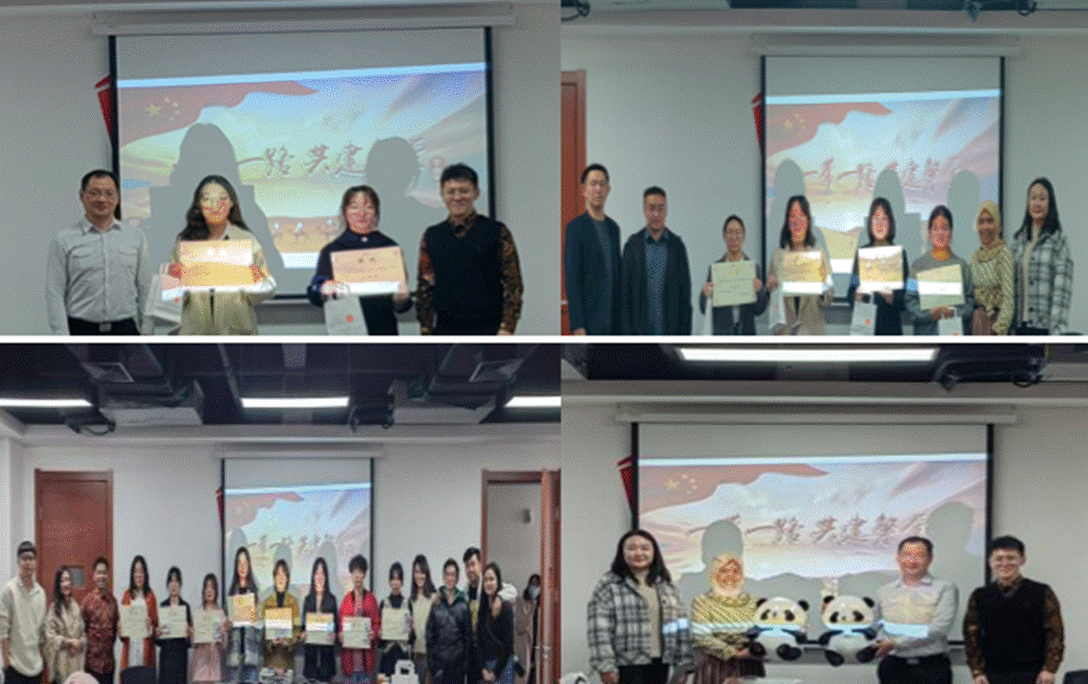 比赛为定向朗诵,要求选手以“一带一路”中印尼新能源材料友好合作、中印尼“两国双园”建设、中国援建印尼主题进行3分钟朗诵。32名来自印尼语专业的选手同台竞技,按照赛前抽签顺序,分别采用了多模态依次展示他们各自的诵读风采。基于选手的临场表现,依据各位评委客观公正的打分,比赛共决出一等奖2名,二等奖4名,三等奖8名。比赛现场颁奖之后,评委王教授勉励在场选手及观众以赛促学、以赛促能,为“一带一路”我国工程建设贡献力量;其他评委老师也分别对选手表现进行点评,在充分肯定选手们的精心准备与精彩表现的同时,也对选手们进一步提升诵读技能等方面提出了宝贵建议。