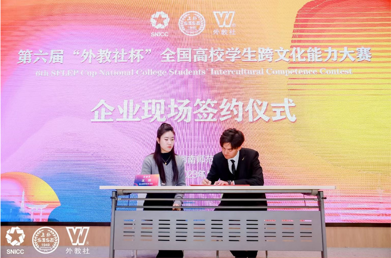 本届大赛期间还进行了一场特别活动-----大赛优秀选手与大型企业签约仪式。数家国际知名企业应邀亲临比赛现场,与参赛选手近距离交流,遴选优秀跨文化人才,双方达成意向即可现场签约。威尼斯官网参赛团队成员艾力卡尔·艾司卡尔江在总决赛中表现出色,获得上汽集团的青睐,与上汽集团签署了合作意向书,体现了威尼斯官网学子优秀的综合素质。
