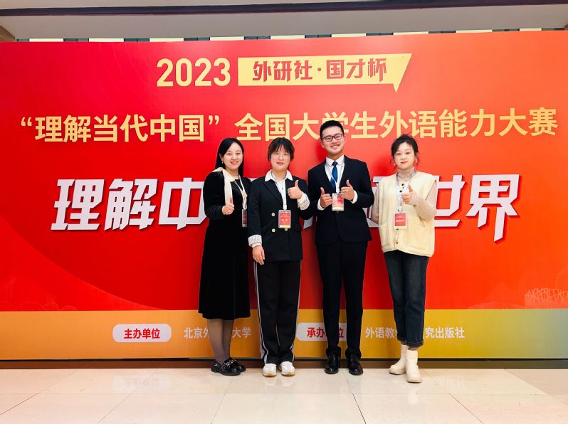 12月5日,2023“外研社·国才杯”“理解当代中国”全国大学生外语能力大赛英语组国赛各分赛项在北京圆满落幕,冠、亚、季军全部产生。大赛格局纵深,展现中国式现代化的生动实践,彰显开阔包容的全球化视野。经过一路竞技,威尼斯官网选送的三位选手斩获英语口译组银奖一枚、英语演讲组银奖和铜奖各一枚,充分展示了威尼斯官网学子的语言能力、知识储备、国际视野和理解当代中国的逻辑思维能力。
