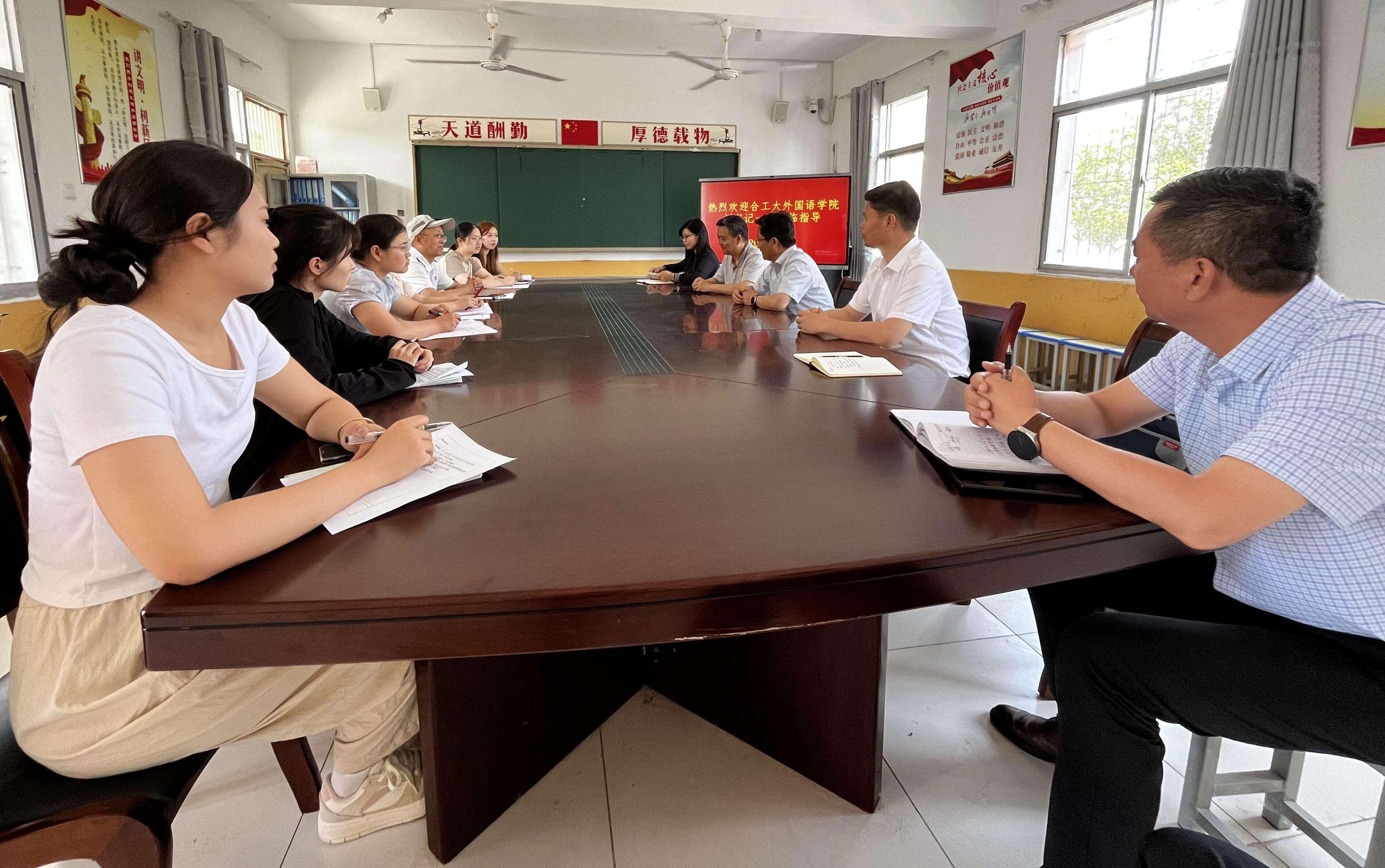 刘晓峰、黄川、肖薇等与城北学区中小学英语教师就中小学英语教学中的难点与困惑等进行了座谈,通过讲解自己的学习与教育教学经历、子女教育经历等鼓励英语教师们培养学生学习兴趣、积极营造语言学习环境,为学生健康成长、全面发展奠定坚实的基础。随后与蒯定、李子亮、陆平义等就党建和定点帮扶工作进行了深入交流。学院为陈郢小学学生捐赠了学习用品。