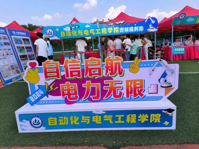 学院迎新帐篷前摆放逐鹿车队的智能小车,既让家长、学生了解了学院知识又宣传了学院特色。